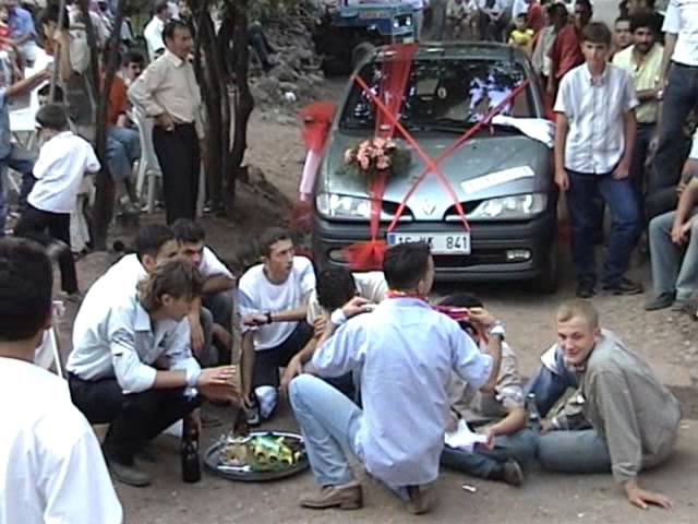 Pazar – Sabah davullar gelir, kahvenin önünde çalarlar, ardından oğlan evine gelirler. Bütün akrabalar ve arkadaşlar toplanıp kız evine çeyiz almaya giderler. Kız evinin akrabaları, oğlan evine gidip çeyizi yerleştirirler. Davullarla gençler eğlence yapar ve eğlenirler, sonra damadı banyoya götürürler. Arkadaşları, davullarla damadın akrabalarına gidip para toplarlar, sonra kız evine gidip damadın kıyafetlerini alırlar. Damat banyodan çıkarılıp köy meydanında giydirilir, ardından damadı evine götürürler. Davullarla gelin almaya giderler, gelini ata bindirirler ve üstüne cibinlik örterler. Davullar eşliğinde gençler oynayarak gelini oğlan evine götürürler. Damat, gelini indirir, sonra damadı oynatırlar ve düğün biter.